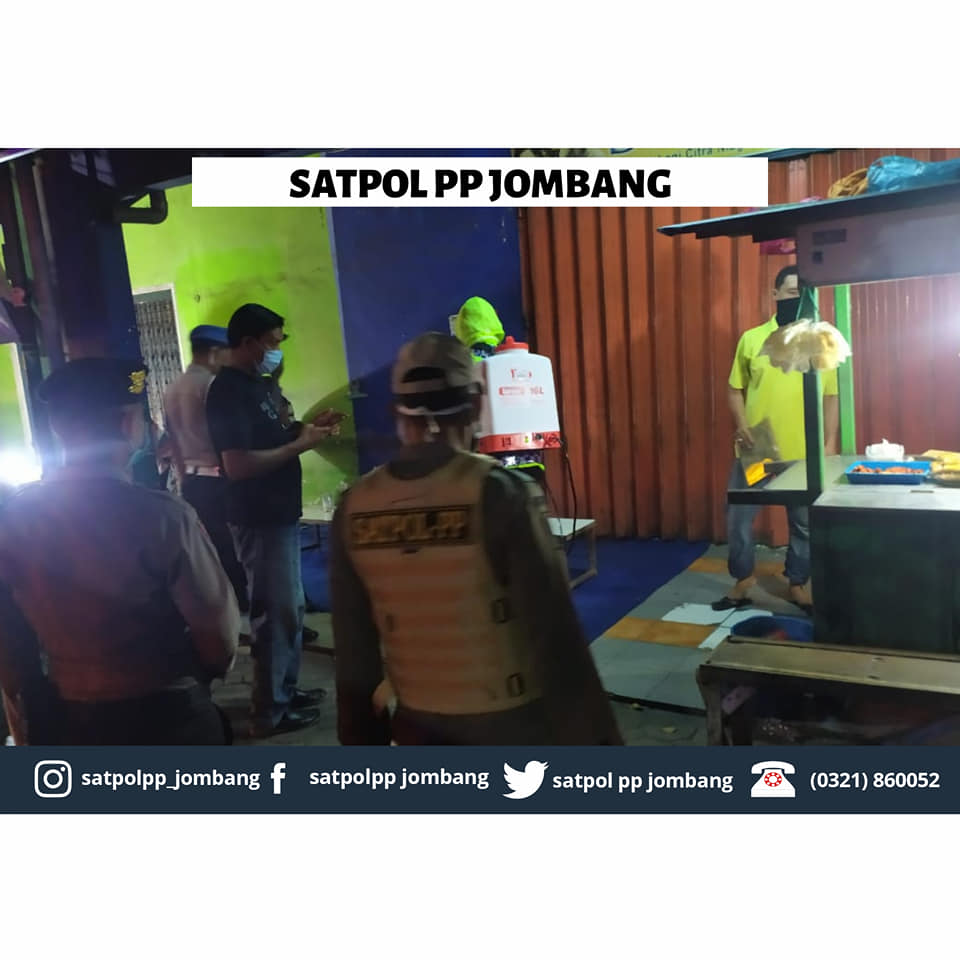 Demi pencegahan penyebaran Virus #COVID-19 Satuan Polisi Pamong Praja melakukan Operasi Gabungan dengan TNI,POLRI,PM, dan DISHUB untuk melakukan sterilisasi cafe atau warung yang menggunakan wifi maupun tempat lain yang mengundang berkumpulnya banyak orang dengan jarak dekat, memberi himbauan agar memakai masker sesuai dengan Instruksi Bupati tentang "Pencegahan Penyebaran Virus Covid-19 di Kabupaten Jombang." Upaya ini dilakukan agar masyarakat menyadari, mengenai pentingnya Sosial Distance saat ini. Sebagai upaya pemutusan mata rantai penyebaran virus Covid-19.