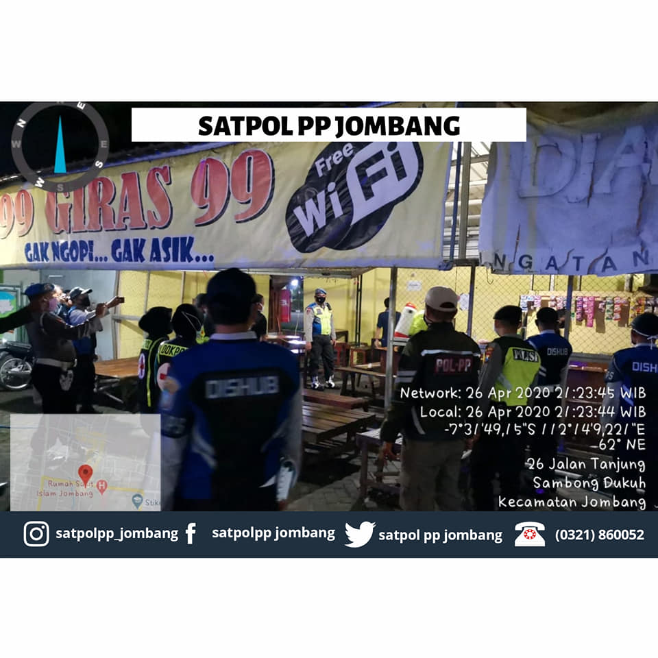 Demi pencegahan penyebaran Virus #COVID-19 Satuan Polisi Pamong Praja melakukan Operasi Gabungan dengan TNI,POLRI,PM, dan DISHUB untuk melakukan sterilisasi cafe atau warung yang menggunakan wifi maupun tempat lain yang mengundang berkumpulnya banyak orang dengan jarak dekat, memberi himbauan agar memakai masker sesuai dengan Instruksi Bupati tentang "Pencegahan Penyebaran Virus Covid-19 di Kabupaten Jombang." Upaya ini dilakukan agar masyarakat menyadari, mengenai pentingnya Sosial Distance saat ini. Sebagai upaya pemutusan mata rantai penyebaran virus Covid-19.