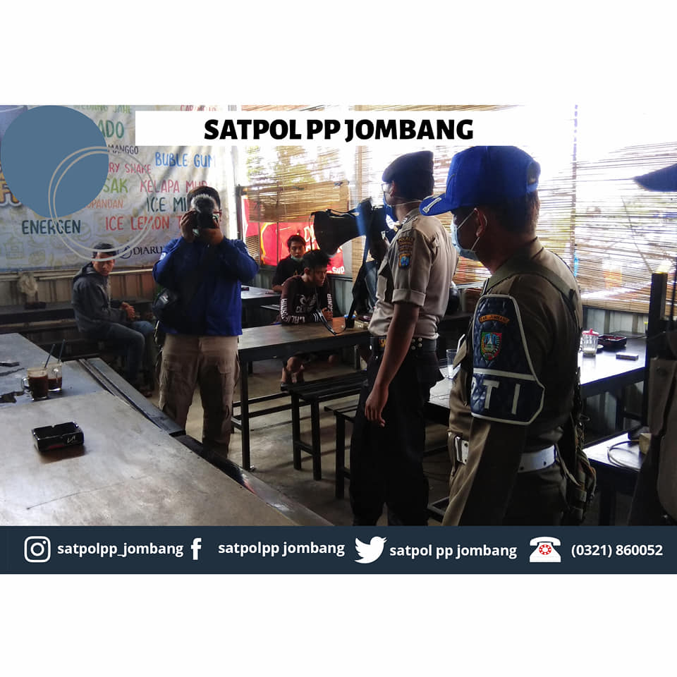 Satuan Polisi Pamong Praja Kabupaten Jombang melakukan giat patroli gabungan dengan Polres Jombang. Giat tersebut menuju cafe / warung kopi yang masih tetap ramai. Pemilik warung / cafe beserta orang yang nongkrong dicafe tersebut langsung di dibawa ke Polres Jombang guna pemeriksaan dan membuat surat pernyataan untuk tidak mengulangi lagi ditengah wabah Corona Virus Disease di Kabupaten Jombang. Hal ini dilakukan untuk meminimalisir dan memutus penyebaran mata rantai Covid-19 di Kabupaten Jombang.