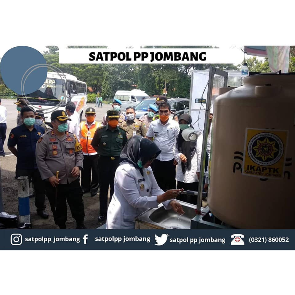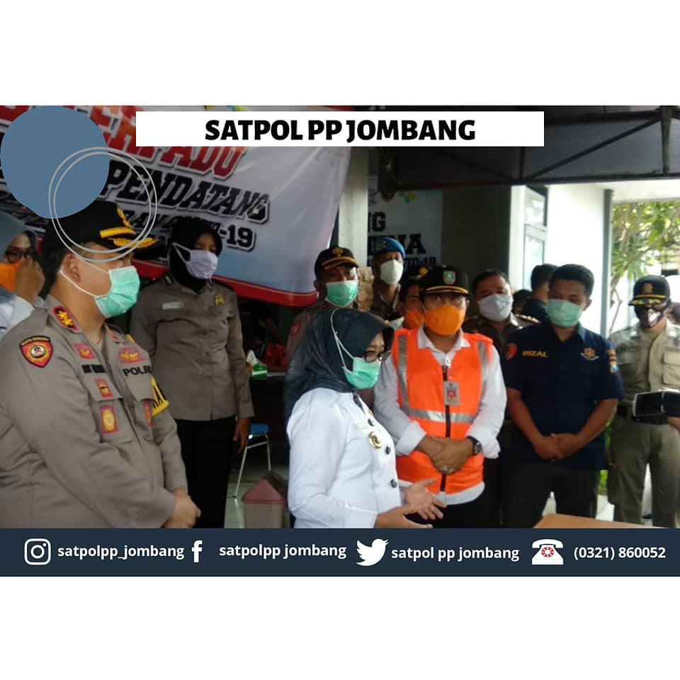 Giat Anggota Tibum & SDA Satuan Polisi Pamong Praja Kabupaten Jombang Persiapan Pengamanan Kunjungan Ibu Bupati di Terminal Kepuh Sari Jombang dalam rangka antisipasi penumpang turun Bus untuk mencegah penyebaran Covid-19