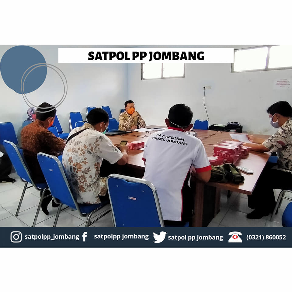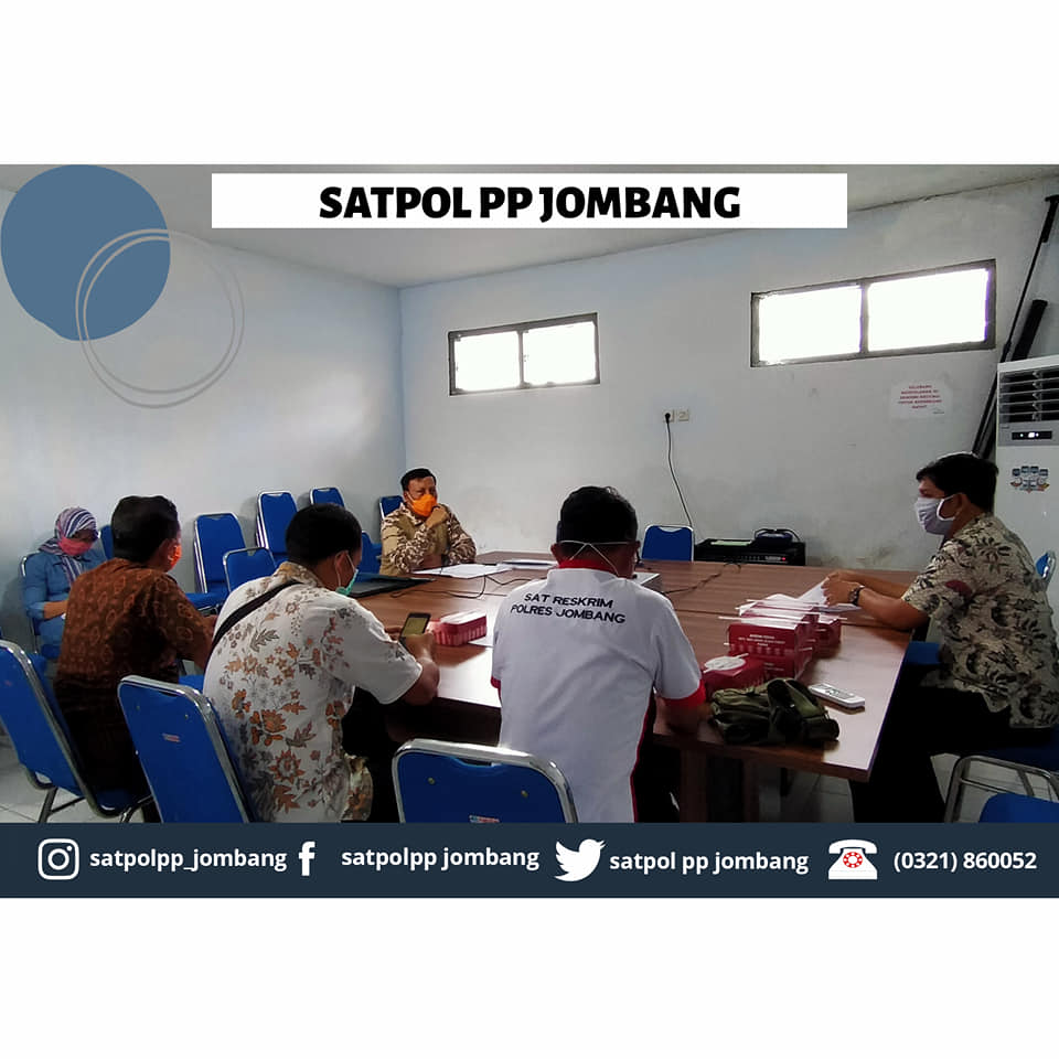 Rapat koordinasi gugus tugas percepatan penanganan Corona Virus Disease (Covid-19) di ruang pertemuan Satpol PP Jombang yg di hadiri Kabag Hukum Sekdakab, Kasat Reskrim Polres Jombang, Kasi Pidum Kajari Jombang , Perwira Sandi Kodim 0814 Jombang, yang di pimpin langsung oleh Kasatpol PP.