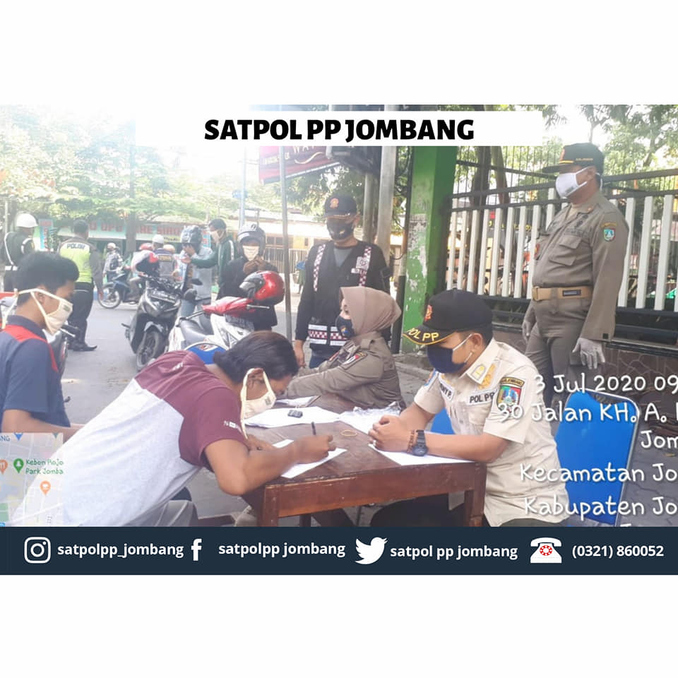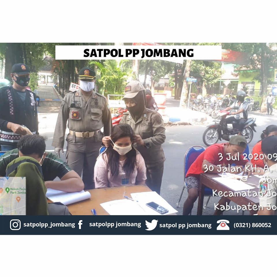 Menindaklanjuti perintah Bapak Kasatpol PP, pagi ini POL PP Jombang bersama tim gabungan TRC POL PP, PM AD, Polri dan Dishub kembali melakukan operasi patuh masker di sepurtaran Alun-alun Jombang. Tim yang di pimpin oleh kabid Tibum dan SDA(Haris Aminudin. S.STP) juga Kasi Pamwal (Purwanto S. Sos, M. Si) serta Kasubag Umum Pol PP Jombang ( Arbanu S.Sos), diharapkan dengan Razia/Operasi Patuh Masker tersebut dapat menyadarkan masyarakat untuk tertib Protokol Kesehatan Covid-19 sebagai implementasi dari Perbup no 34 tahun 2020 Tentang Pengendalian Pandemi Covid 19 di Kabupaten Jombang. Karena Disiplin mematuhi Protokol Kesehatan adalah Vaksin terampuh untuk Covid 19.
