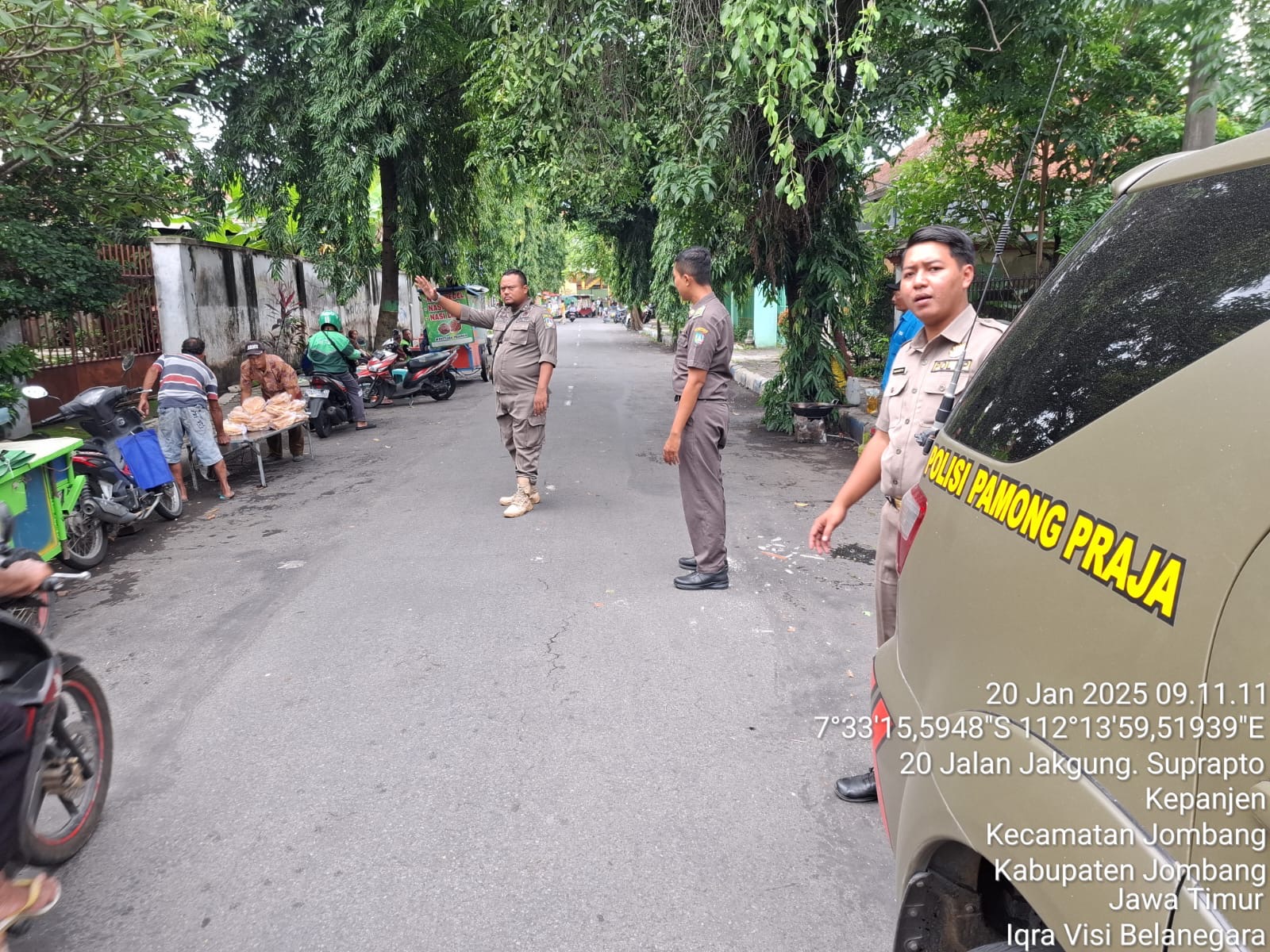 Jombang, 20 Januari 2025 – Satuan Polisi Pamong Praja (Satpol PP) Kabupaten Jombang melaksanakan kegiatan himbauan kepada Pedagang Kaki Lima (PKL) yang masih berjualan di bahu jalan kawasan kota Jombang pada Senin pagi. Kegiatan ini bertujuan untuk mengingatkan para pedagang agar tidak menggunakan bahu jalan sebagai tempat berjualan, demi menjaga ketertiban dan kelancaran lalu lintas.