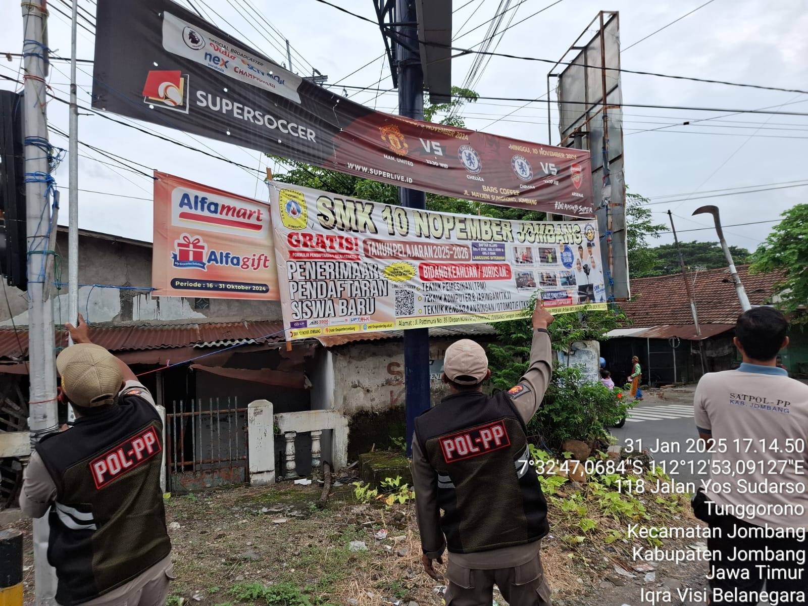 Satpol PP Jombang Lakukan Penertiban Reklame Liar di Beberapa Titik Kota Jombang