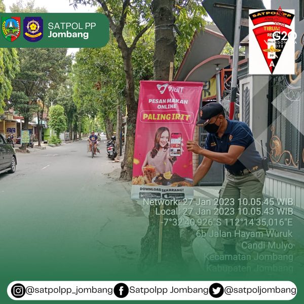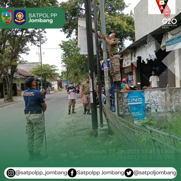 Berdasarkan laporan dan keluh kesah masyarakat / warga Kabupaten Jombang terkait maraknya pemasangan reklame bodong / tak berijin menganggu keindahan pemandangan wajah kota Jombang. Pemasangan reklame dengan cara dipaku dipepohonan membuat Kasatpol PP bertindak tegas menugaskan anggota Satpol PP Jombang untuk melakukan operasi reklame. Hari ini, sasaran operasi reklame di beberapa titik yaitu sepanjang Jl. Pahlawan, Jl. Hayam wuruk, Jl. Urip sumoharjo dan Jl. Kapten Pierre Tendean. Harapan Kasatpol PP Jombang (Thonsom Pranggono, AP) dan Sekretaris Satpol PP Jombang (Samsudi, SH. M. Si) dengan dilakukan nya operasi reklamw secara rutin dapat membantu Jombang lebih indah dan tertib lingkungan.